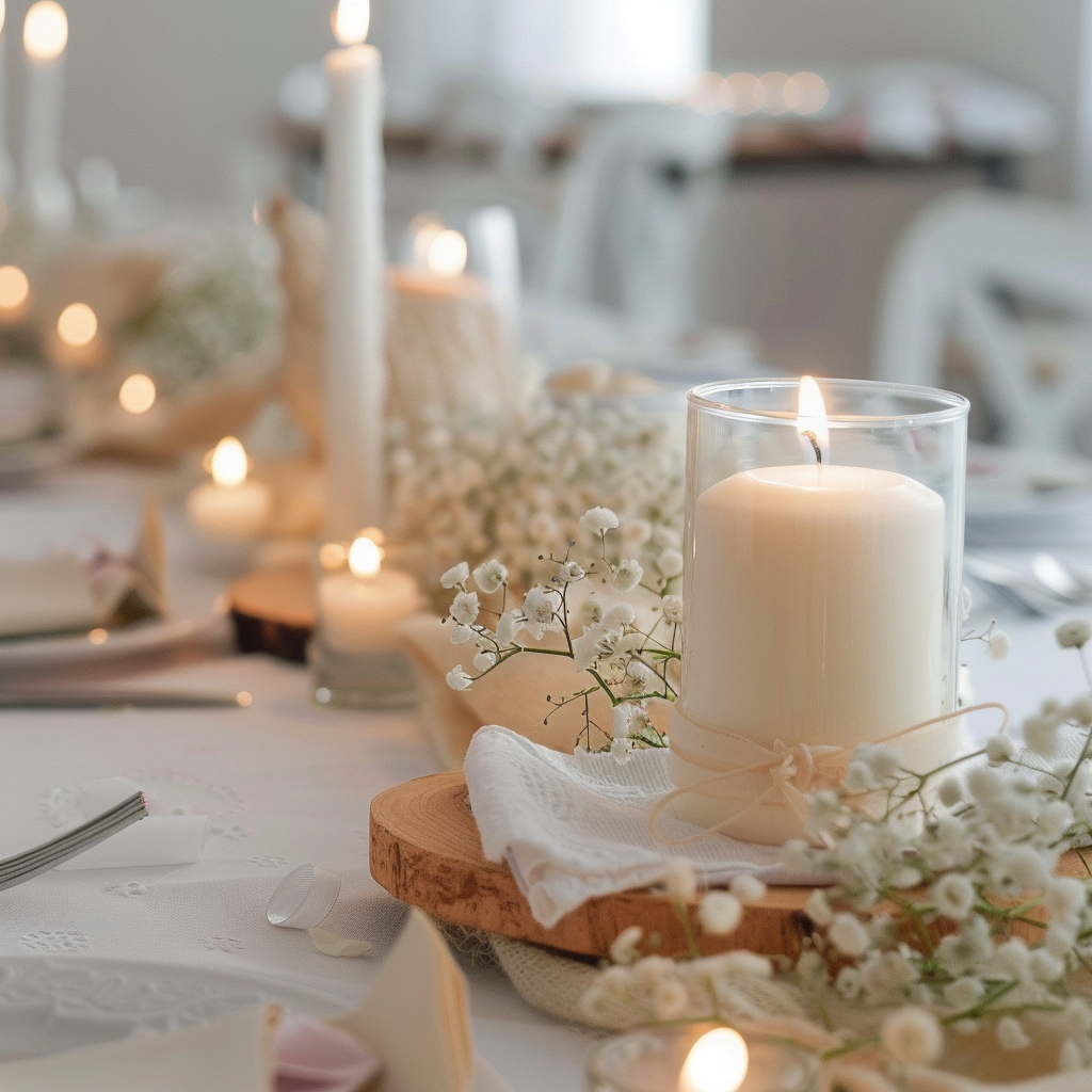 - Zusätzliche Kerzen: Fügen Sie kleinere, passende Kerzen oder Teelichter auf dem Tisch hinzu, die in ähnlichen Farben gehalten sind wie die Taufkerze. Diese schaffen eine warme, einladende Atmosphäre.
