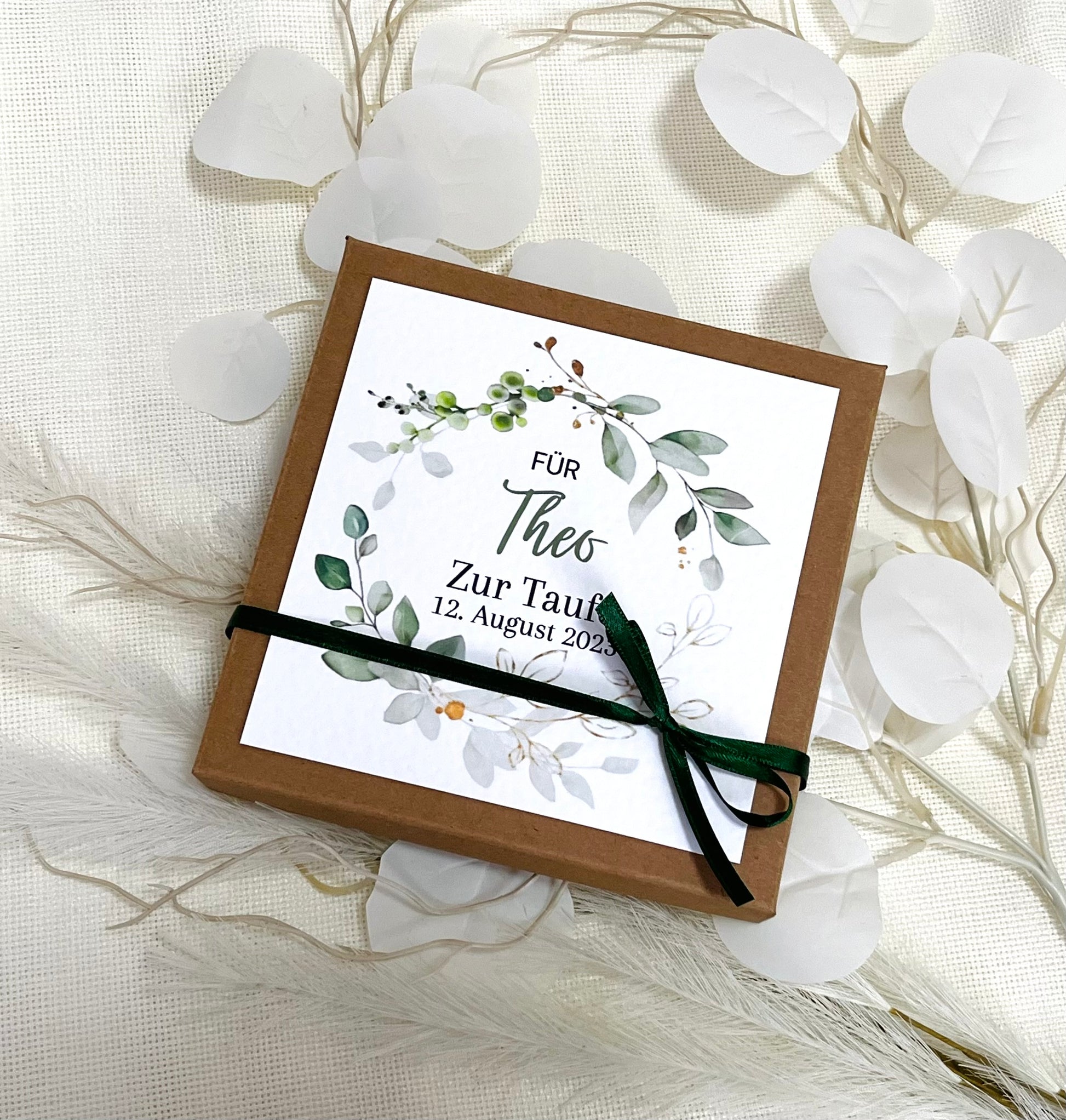 Mit dieser personalisierten Geschenkschachtel erhaltet ihr ein individuelles und wunderschönes Geldgeschenk zur Taufe.