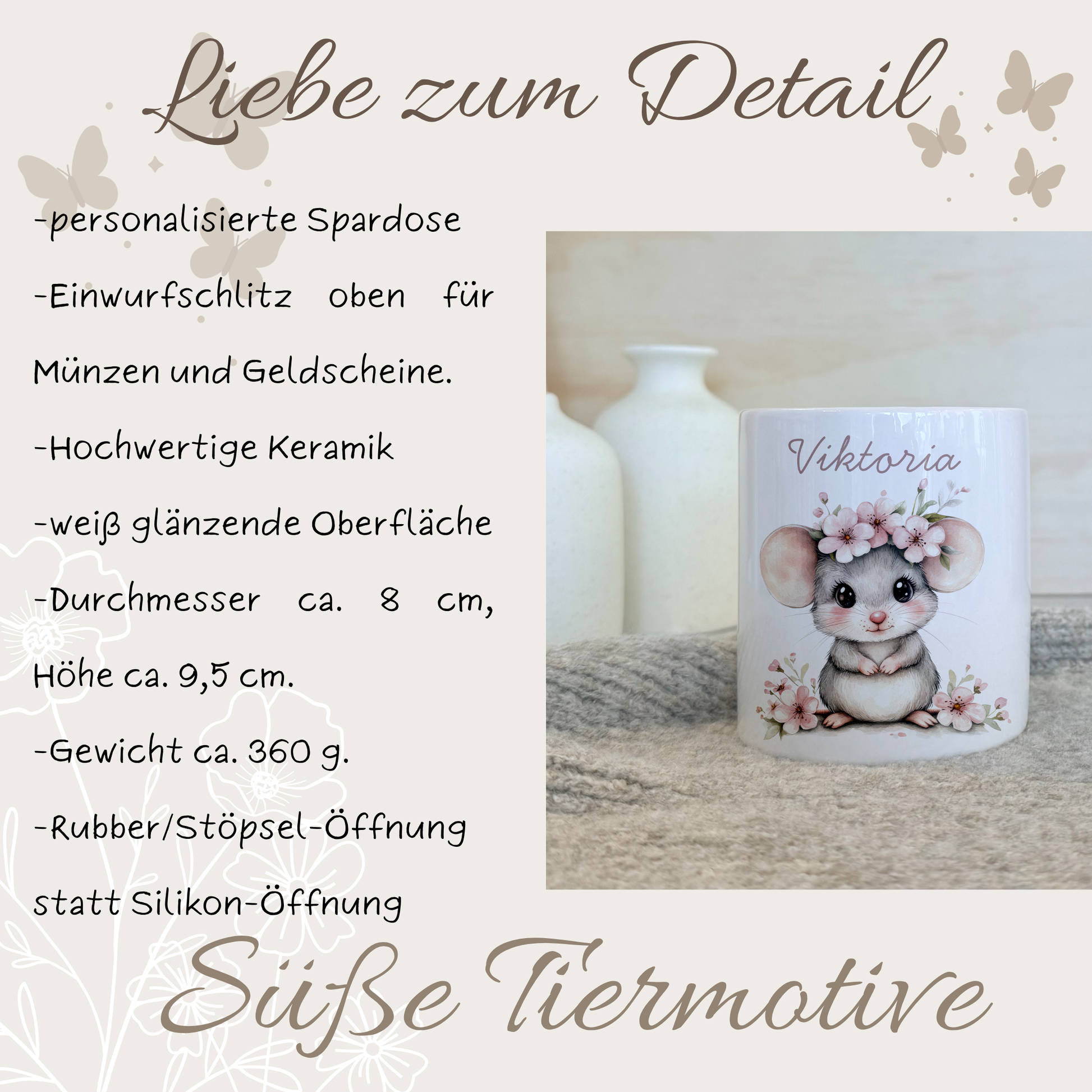 🌟 Kinder-Set – Wald- & Safaritiere | Spardose, Trinkflasche, Keramiktasse & Emaille-Tasse