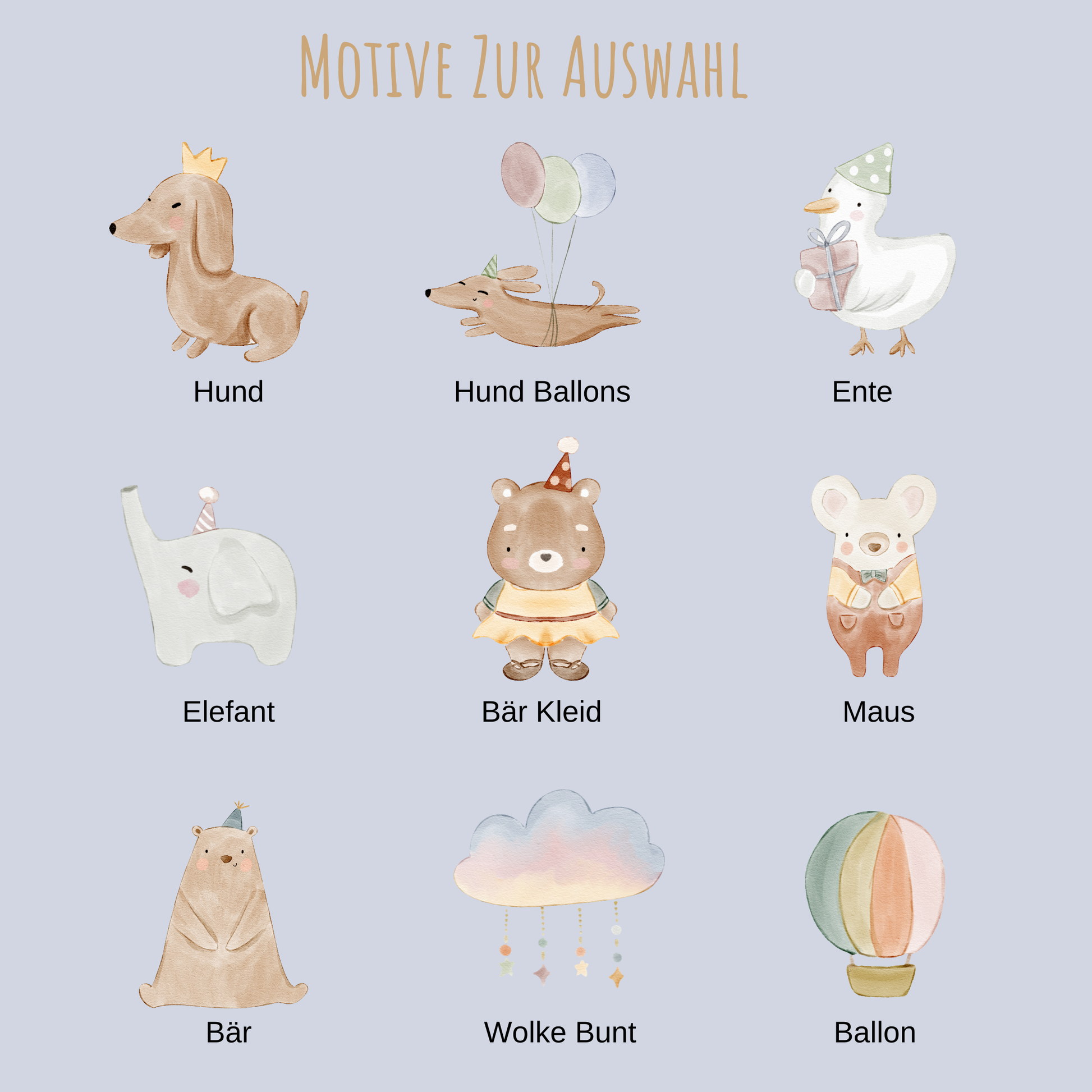 Wähle aus einer exklusiven Auswahl an Wald- & Wildtier-Motiven im zarten Aquarellstil: