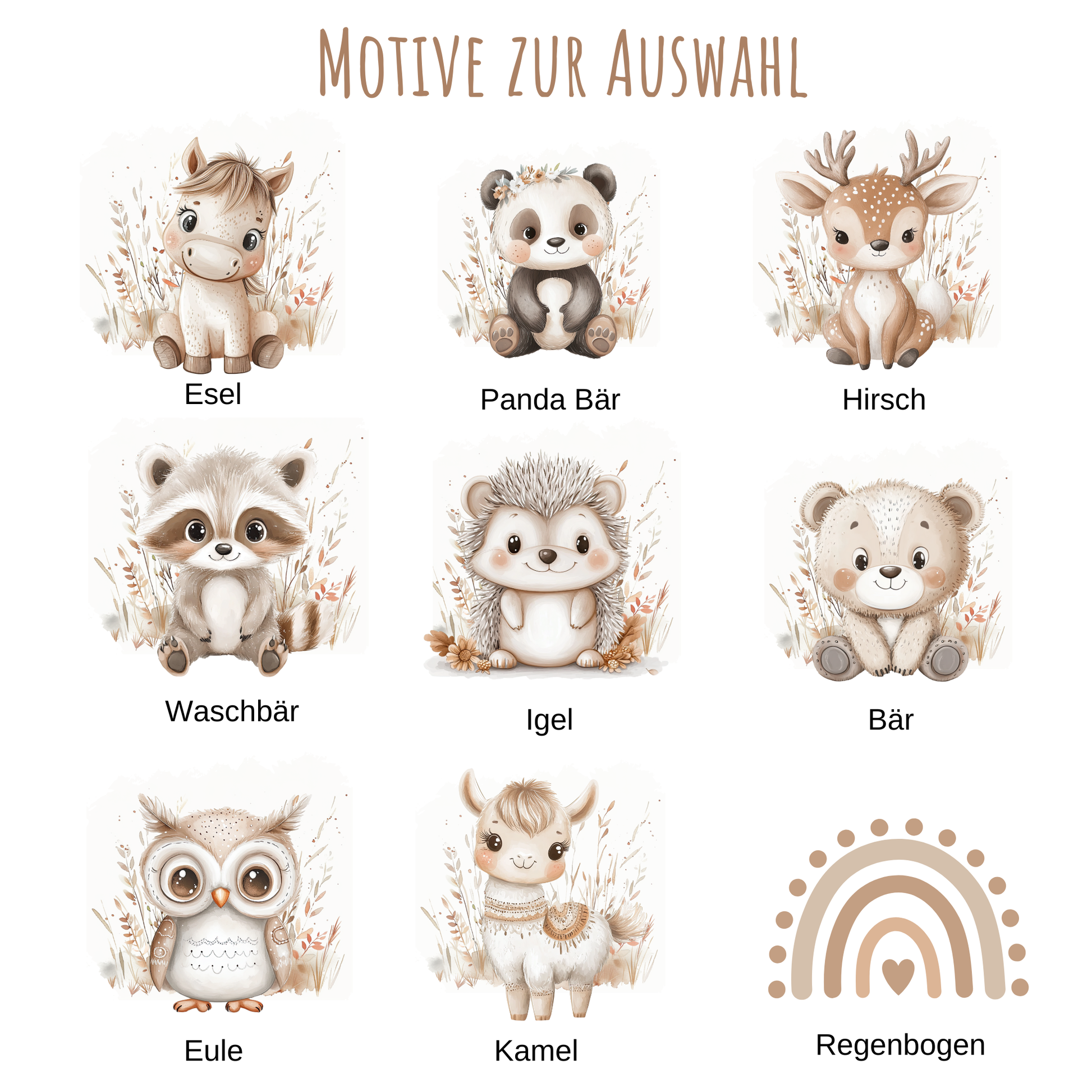 Wähle aus einer exklusiven Auswahl an Wald- & Wildtier-Motiven im zarten Aquarellstil: